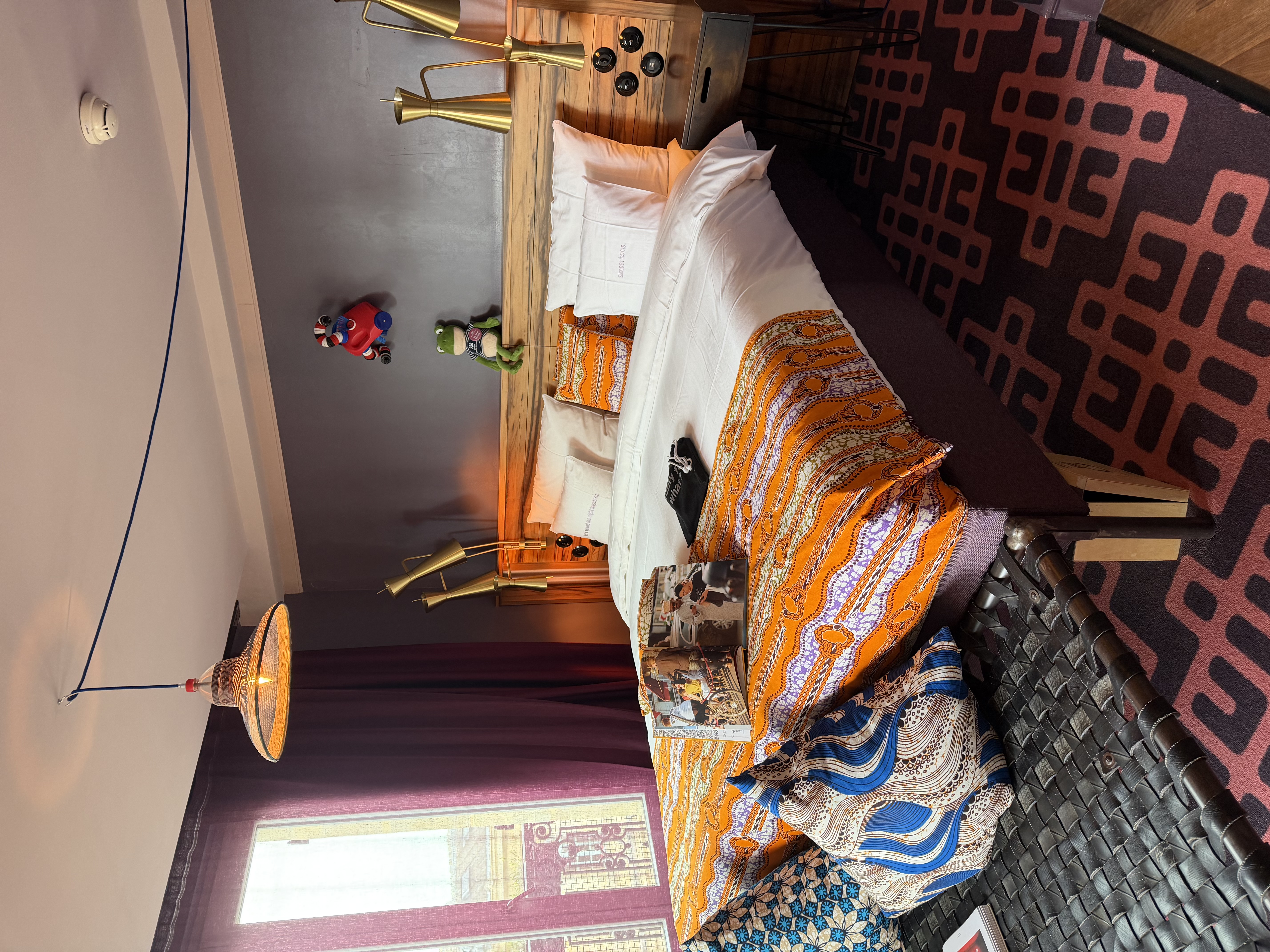 Les couleurs s’entremêlent, les objets attirent l’œil, les mots apparaissent là où on ne les attend pas. Rien n’est figé, tout semble en mouvement, comme si l’hôtel avait été pensé comme une succession de détails à découvrir plutôt qu’un simple lieu où séjourner.