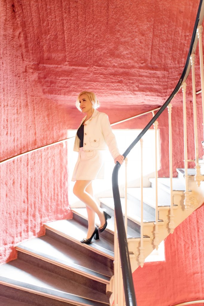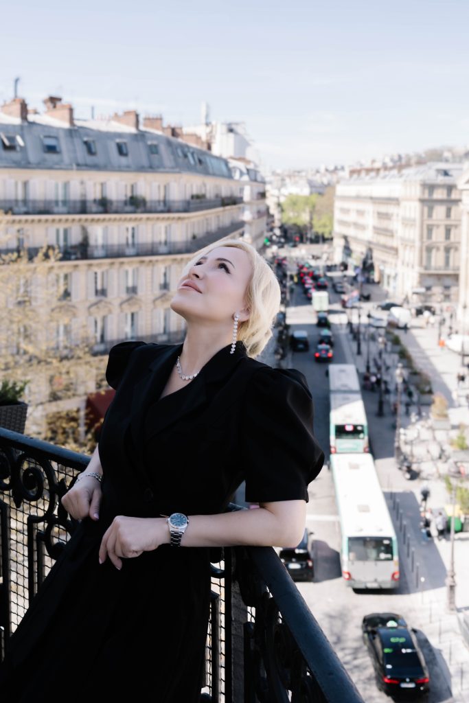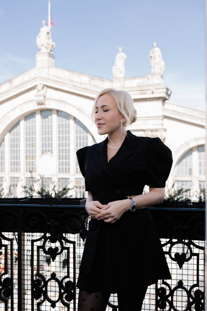 On quitte un instant le jeu, les couleurs, l’excentricité, pour retrouver une certaine idée de l’élégance parisienne.